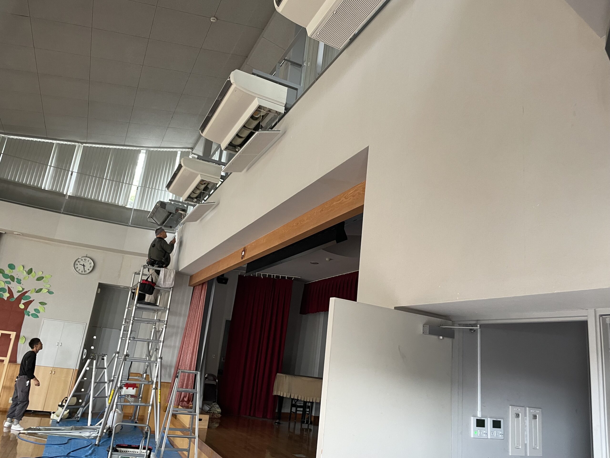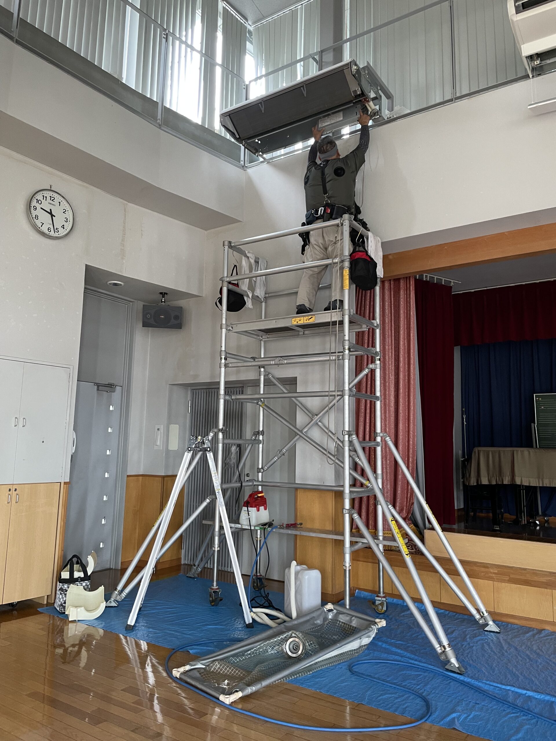 認定こども園 貢川進徳幼稚園様 体育館、教室のエアコンクリーニング 貢川進徳幼稚園様より、教室と体育館のエアコンクリーニングのご依頼がありました。 体育館のエアコンは、高さ5mくらいの場所に設置されているため、ローリングタワーでの作業となりました。 定期的なエアコンクリーニングで、いつもきれいな環境で過ごせます。 作業内容 エアコンクリーニング 作業地域 甲府市 業種名/店舗・会社名 認定こども園